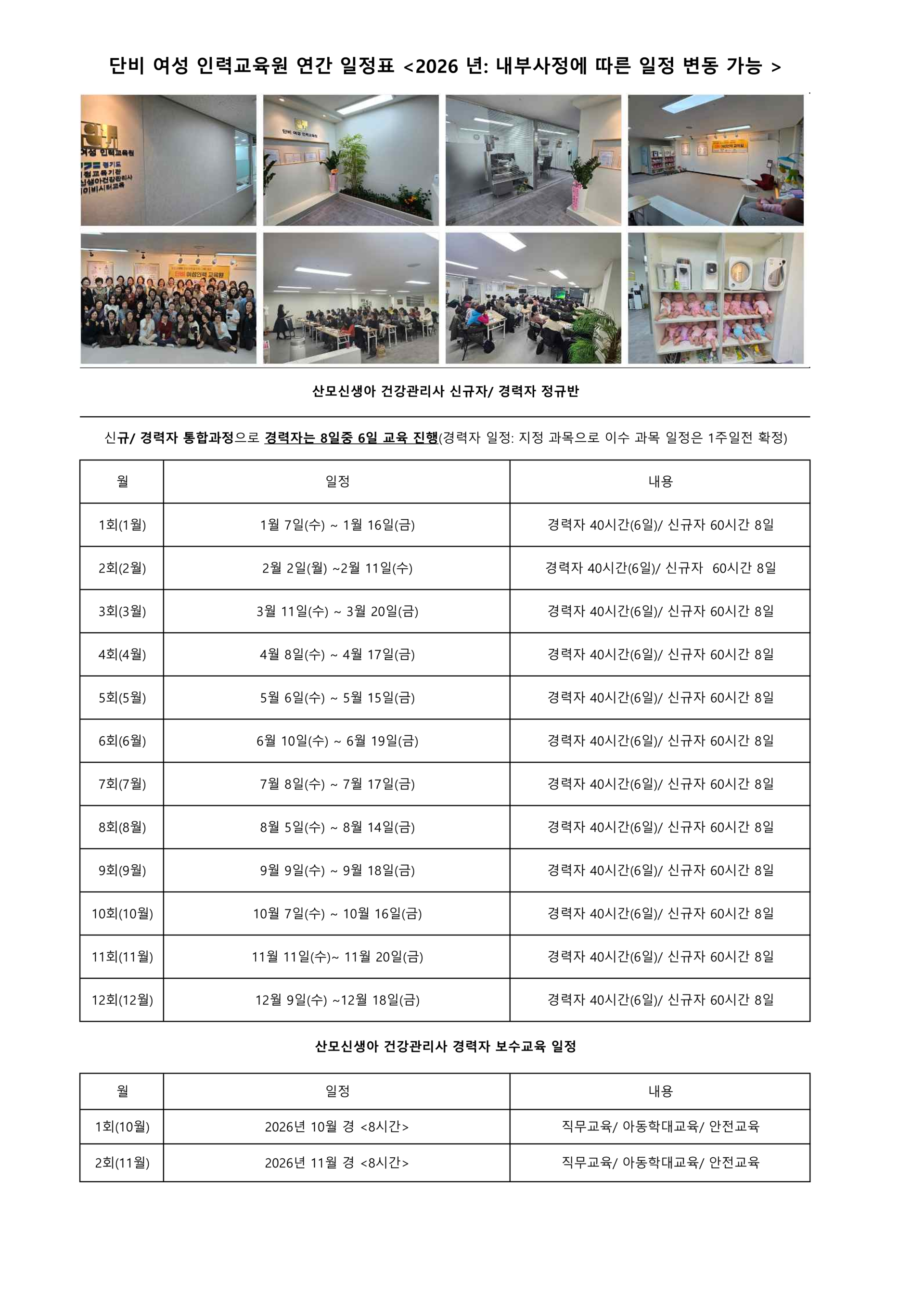 2026년 연간 일정표 (일정 변동 가능)