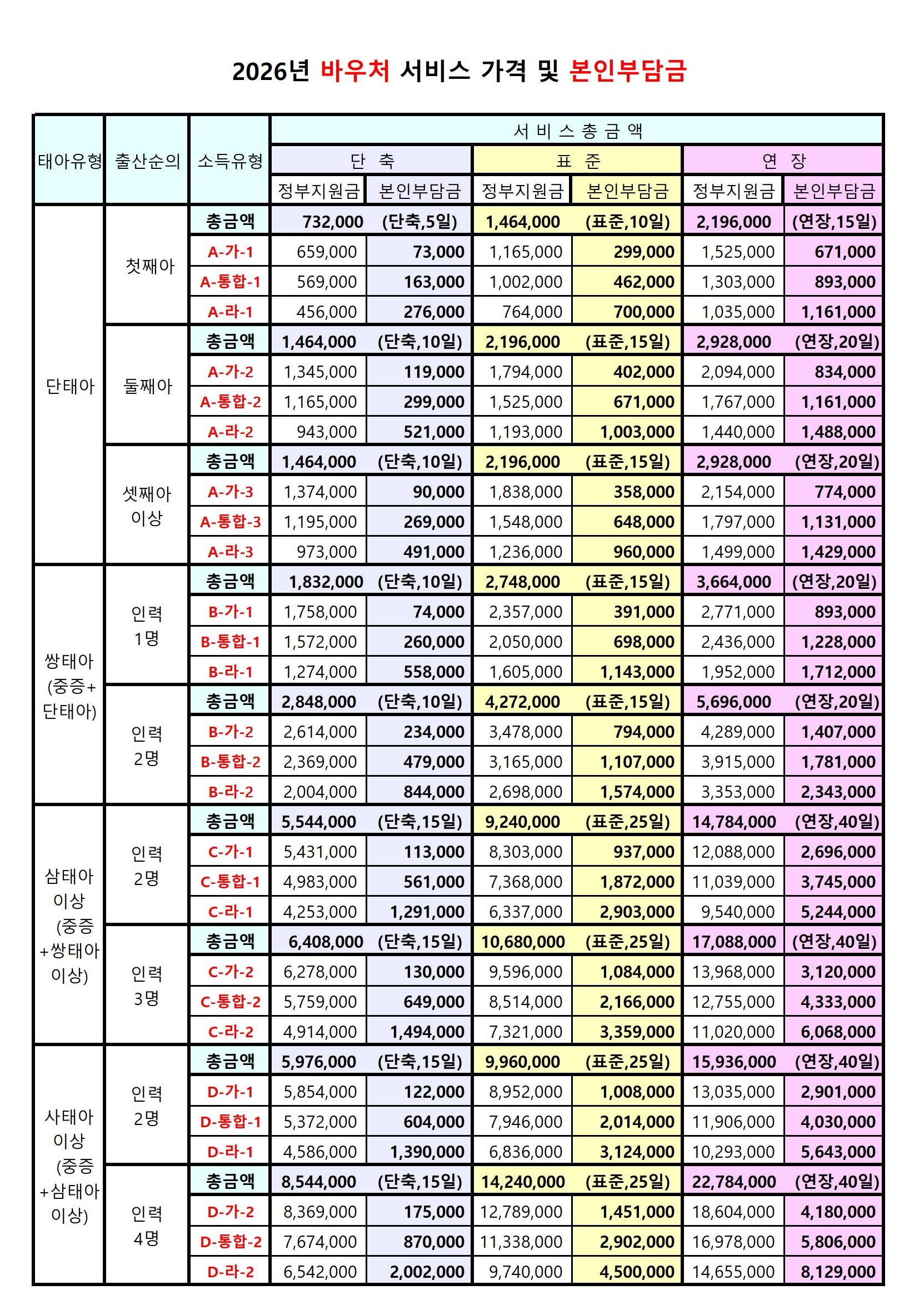 서비스 가격(정부지원 바우처)